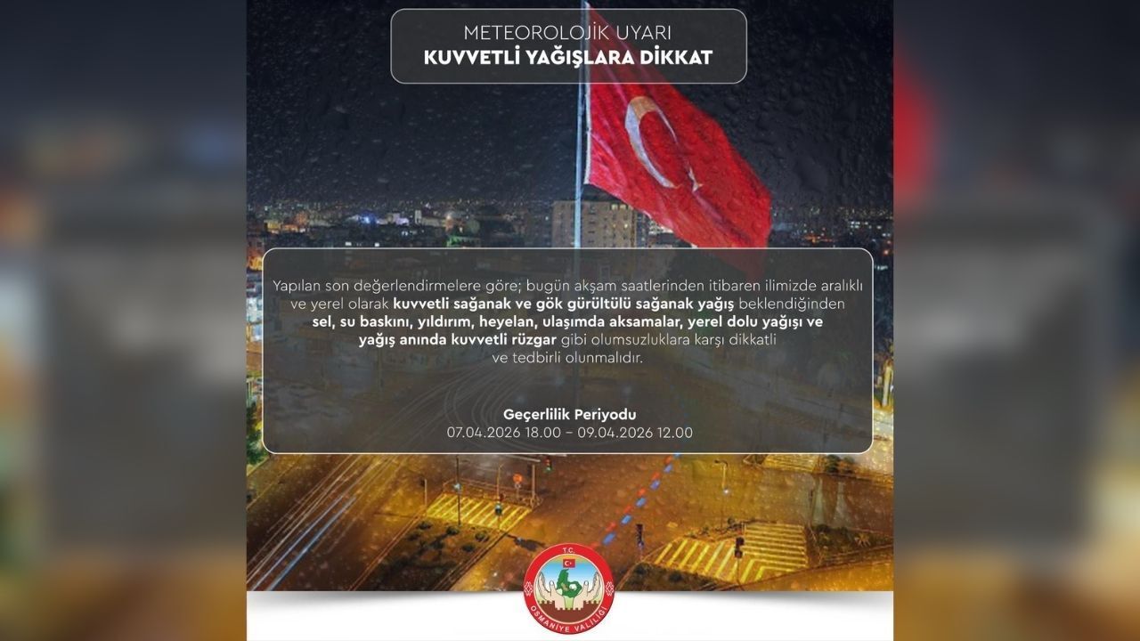 Meteorolojik uyarının 7 Nisan 2026 saat 18.00 itibarıyla başladığı ve 9 Nisan 2026 saat 12.00’ye kadar devam edeceği bildirildi. Vatandaşların bu süre zarfında can ve mal güvenliği açısından yetkililerin duyurularını takip etmesi önem arz ediyor.