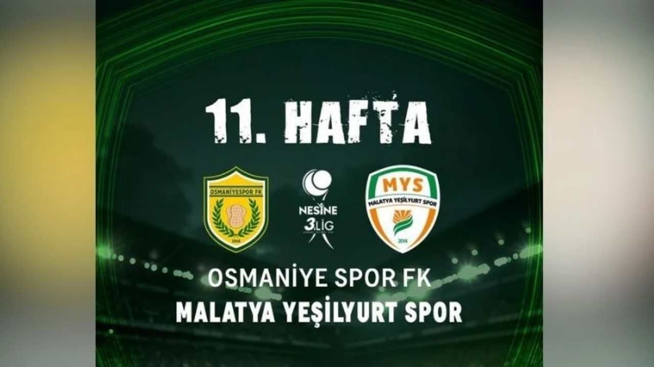 Futbolseverlerin merakla beklediği heyecan dolu Haftanın Maçı'nda, Osmaniye temsilcisi Osmaniyespor FK, bugün (30 Kasım Pazar) kendi sahasında Malatya Yeşilyurt Spor'u konuk edecek.