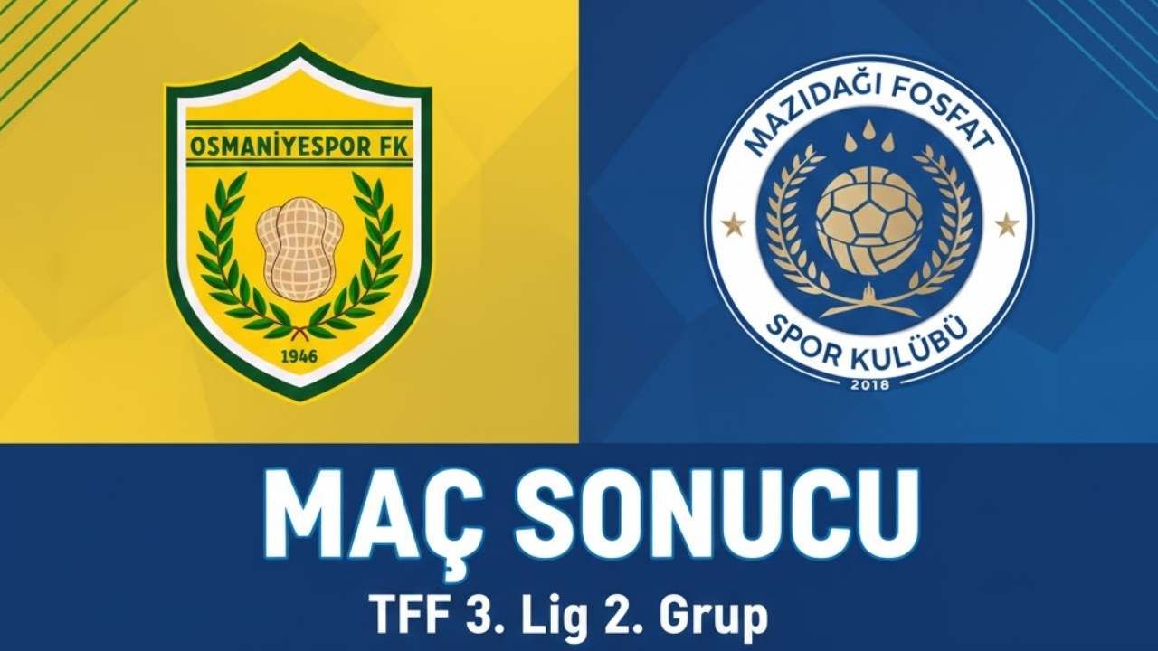 TFF 3. Lig 2. Grup 16. hafta karşılaşmasında Osmaniyespor FK, sahasında Mardin temsilcisi Mazıdağı Fosfatspor’u konuk etti. Osmaniye’de saat 13.00’te başlayan mücadelede ilk yarı dengeli bir oyunla geçerken, ikinci yarıda sahneye çıkan taraf konuk ekip oldu. Mücadelenin ilk 45 dakikasında iki takım da temkinli bir futbol ortaya koydu ve soyunma odasına golsüz eşitlikle gidildi. Ancak ikinci yarıda oyunun kontrolünü eline alan Mazıdağı Fosfatspor, bulduğu gollerle skoru lehine çevirmeyi başardı. Deplasmanda alınan bu net galibiyet, hem tribünleri dolduran Osmaniyeli futbolseverlerin hem de sahadaki mücadeleyi yakından takip edenlerin dikkatinden kaçmadı.