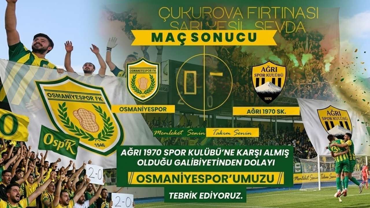Maçın ardından Osmaniye Valiliği, sosyal medya hesapları üzerinden kutlama mesajı yayımladı. Görselde yer alan mesajda, "Ağrı 1970 Spor Kulübü’ne karşı almış olduğu galibiyetinden dolayı Osmaniyespor’umuzu tebrik ediyoruz" ifadelerine yer verildi. "Memleket Senin, Takım Senin" vurgusuyla şehrin takımına olan destek bir kez daha yinelendi.