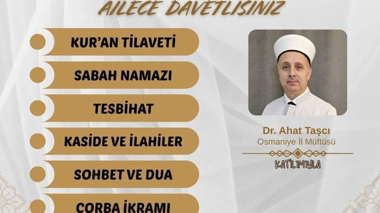 Osmaniye halkı ve tüm ilçe sakinleri, sabah namazına katılarak bu önemli buluşmaya davet edildi. Programın, hem dini hem de sosyal açıdan faydalı olacağı ve katılımcılara huzur vereceği ifade ediliyor.
