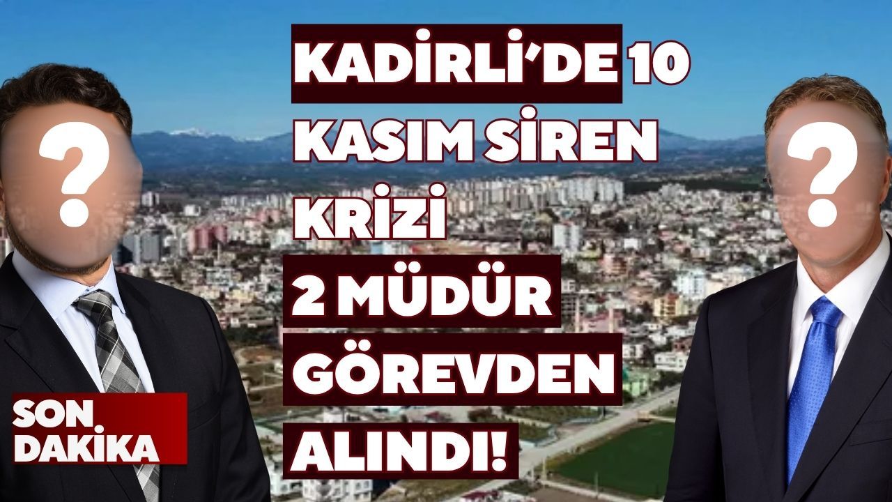 Kadirli Belediyesi’nde görev yapan Bulut Özyüksel (Özel Kalem Müdürü) ve Cezmi Aydın (Zabıta Müdürü), 10 Kasım sabahı anons sisteminde ve bazı bölgelerdeki megafonlarda meydana gelen teknik arızalardan dolayı sirenlerin çalınmaması üzerine görevden alındı.