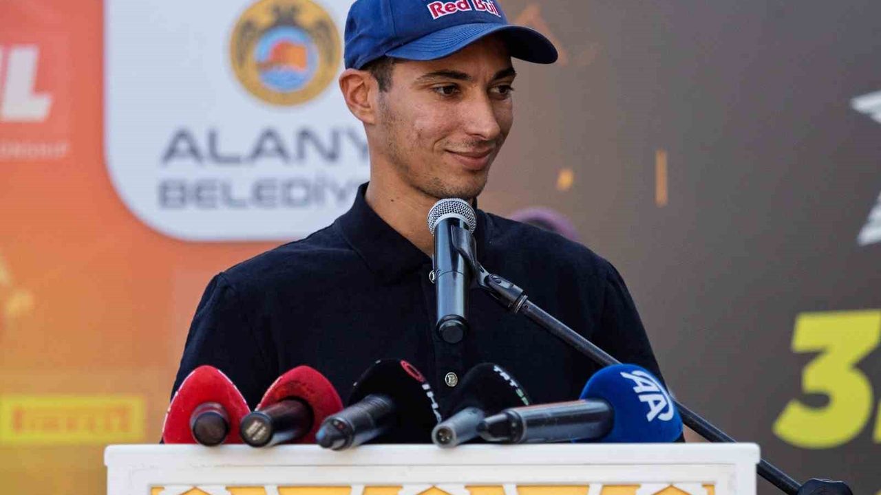 Şampiyonluğu ilan etmekten dolayı mutlu olduğunu dile getiren Dünya Şampiyonu Toprak Razgatlıoğlu, Alanya halkına ve organizasyonu düzenleyenlere teşekkür etti. Razgatlıoğlu, "Ben her zaman biz diyorum çünkü hep beraber bu dünya şampiyonluğunu elde ettik. Çünkü sizlerin yorumları ve bize olan sevginiz gerçekten bizleri çok güçlendiriyor," dedi. Zorlu bir sezon geçirdiklerini belirten milli sporcu, özellikle son yarışın stresine değinerek, "Rakibimiz tarafından yarış dışı kalmıştık. Son yarışta her şey bitti. O stres altında gerçekten yönetmek biraz zordu. Ama bir şekilde şampiyonluğu tekrar ilan ettik" şeklinde konuştu.