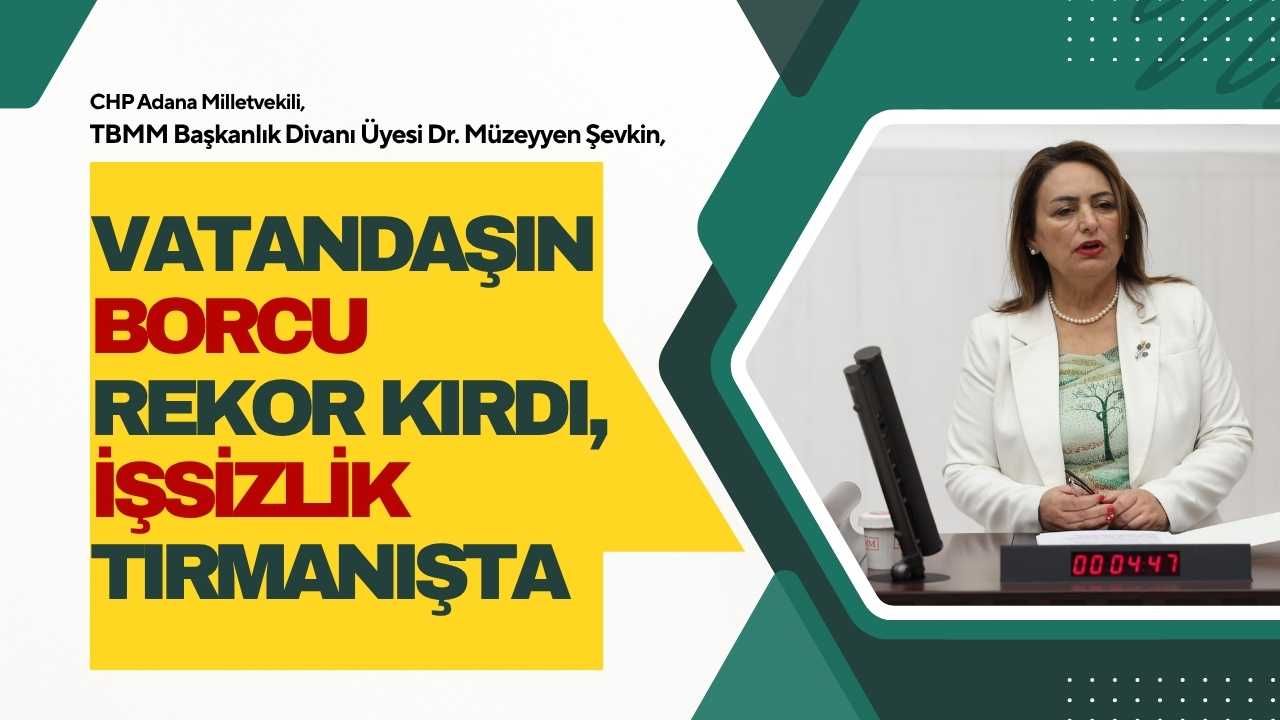 CHP Adana Milletvekili Dr. Müzeyyen Şevkin, Türkiye’de ekonomik krizin derinleştiğine dikkat çekerek, vatandaşın borç yükünün ve işsizlik oranının endişe verici boyutlara ulaştığını vurguladı. Geniş tanımlı işsizliğin 12 milyon 233 bin kişiye çıktığını belirten Şevkin, vatandaşın toplam borcunun 5 trilyon 462 milyar liraya ulaştığını ifade etti.